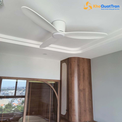 Tông màu trắng toàn bộ giúp quạt dễ dàng kết hợp với nội thất phòng ngủ, phòng khách hay căn hộ studio mang phong cách tối giản, Scandinavian hoặc Nhật Bản.